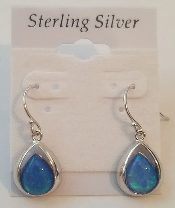 Teardrop Synthetic Opal dangle Earring Dim: 1.08" H x 0.50" W Metal: Rhodium over 925 Sterling Silver |