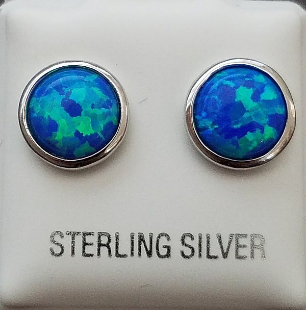 Synthetic Opal Round Post Dim: Metal: Rhodium over 925 Sterling Silver |