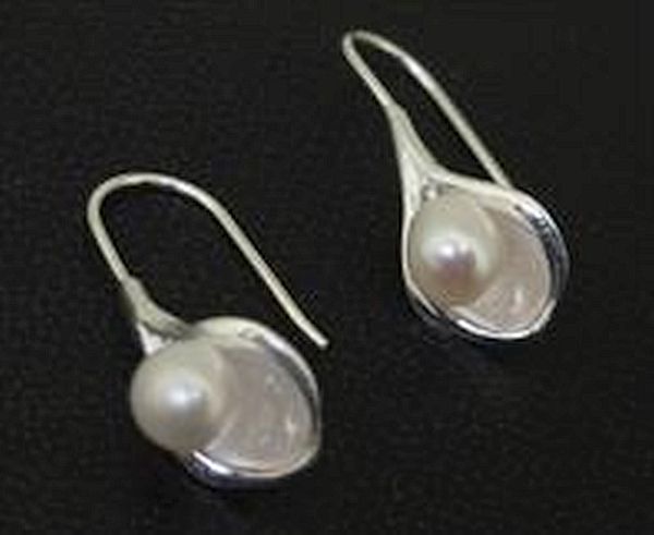 7mmx9mm Freshwater Pearl drop inside of a Lily Hook Earring Dim: 1.06"H x 0.47"W (27mmx12mm) Metal: 925 Sterling Silver |